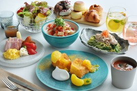 (右)ビュッフェレストラン「PUKU PUKU」から「ふぐ」を使ったバラエティ溢れる料理の数々。ふぐのから揚げ、